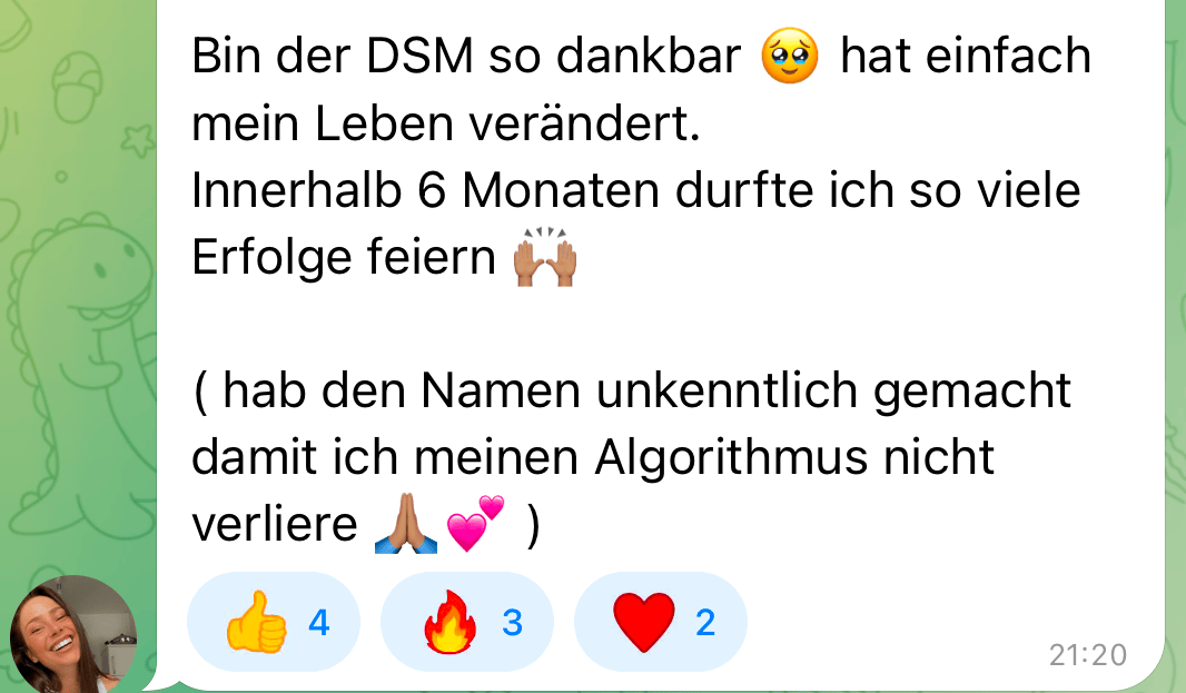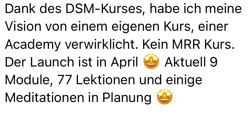 Die DSM 2.0 stattet dich mit präzisen Instrumenten & Werkzeugen aus, doch erst dein Tun und dein Mindset verwandeln diese Werkzeuge in messbare Resultate. Nachhaltige Erfolge entstehen nicht über Nacht.